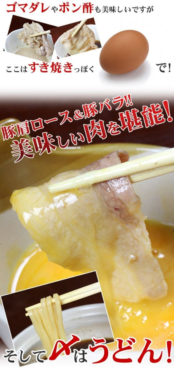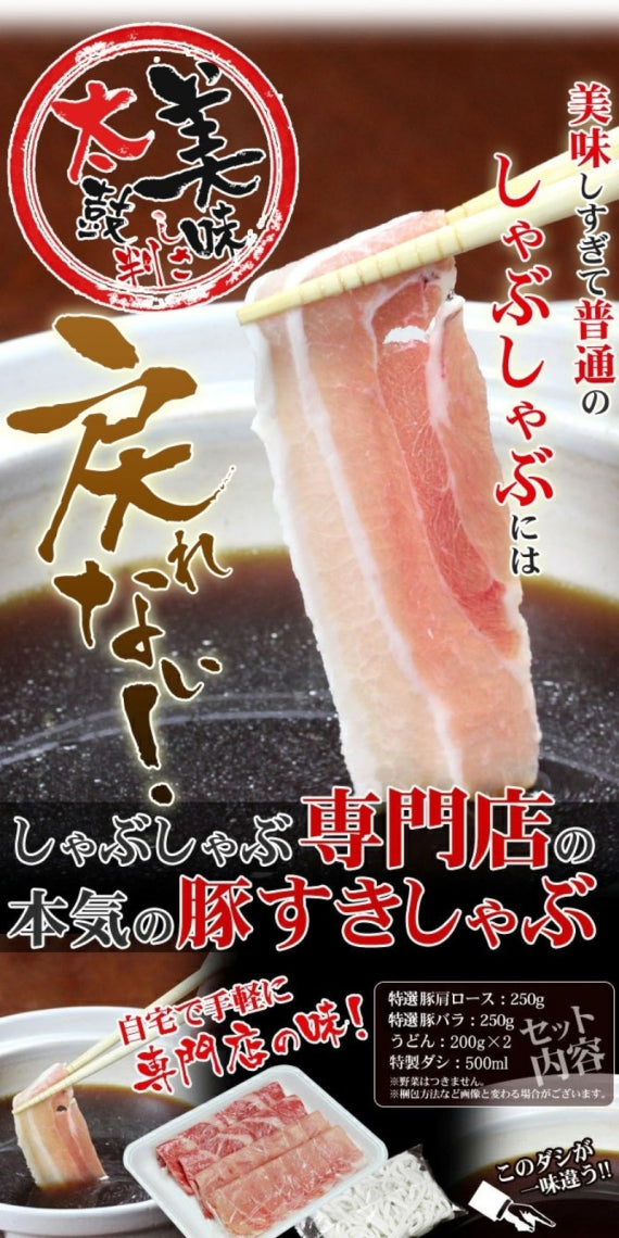 内容量特選豚肩ロース:250g 特選豚バラ:250g うどん:200g×2 ダシ:500ml産地名デンマーク又はカナダ又はスペイン又はオーストリア又はアイルランド又はブラジル (産地は仕入れ状況により異なります)保存方法-18℃以下で保存 賞味期限製造日より4日以内。ナマモノなのでお早めにお召し上がりください。原 材 料[肉]特選豚肩ロース、豚バラ[うどん]小麦粉、食塩、加工でん粉[ダシ]醸造アルコール、米、米こうじ、糖類、米焼酎 調味料(アミノ酸)、酸味料、砂糖、脱脂加工大豆(遺伝子組換えではない)、食塩、小麦、大豆(遺伝子組換えではない販売事業者名 : (有)しゃぶ亭まる 販売事業者住所:761-0313香川県高松市下田井町594-2※北海道・沖縄・一部地域は別途送料1000円が必要となります。あらかじめご了承ください。