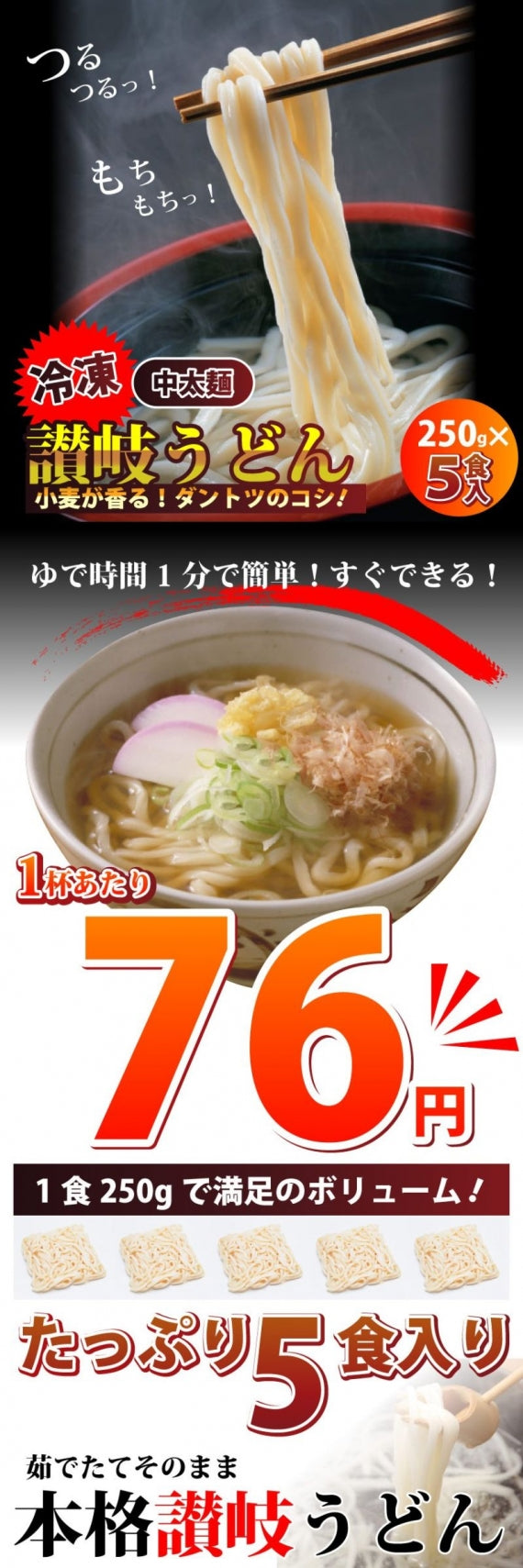讃岐うどん 本場 冷凍うどん 5食入り 麺類 個包装 茹でるだけ 簡単調理 お取り寄せ*当日発送対象