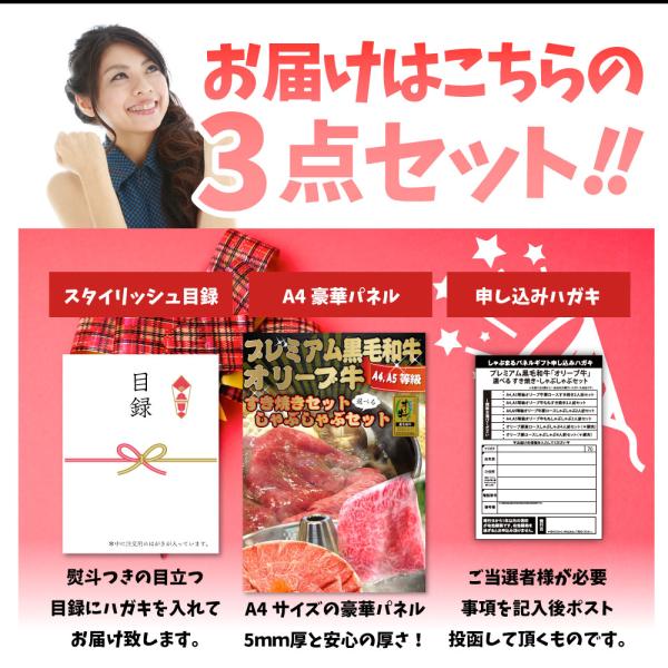 | 商品名 | オリーブ牛「すき焼き」「しゃぶしゃぶ」が選べるパネルギフト7000円ポッキリ |