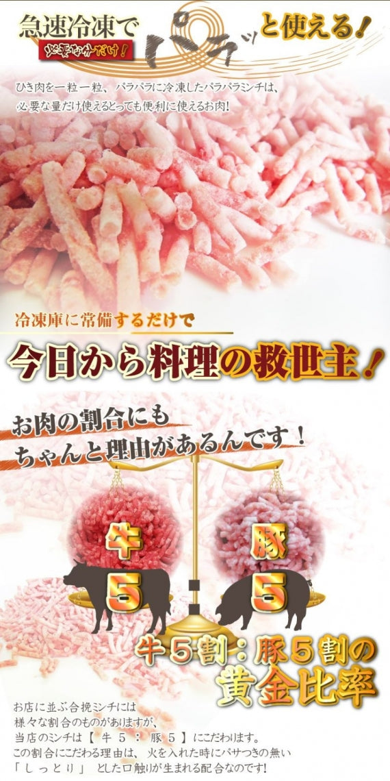 メガ盛り パラパラ 合挽き ミンチ 1kg 豚 牛 お徳用 冷凍庫のストックにぴったり