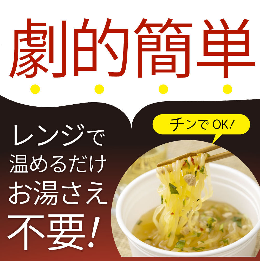 | お召し上がり方 | (1) マンナンヌードルを袋からあけ、液ごとカップへ移して、粉末スープを入れて、よく混ぜ合わせてください。 液がスープになっています。(開封時、中身が飛び出す恐れがありますのでご注意ください。) (2) ラップをせずに電子レンジで約2分(600W)加熱してください。 (3) よく混ぜ合わせて出来上がりです。 ※加熱後の状態に応じて加熱時間を調整してください。 ※連続で3分以上加熱しないでください。容器が破損する原因になります。 ※調理時、持ち運び時、喫食時等のヤケドには十分ご注意ください。 |