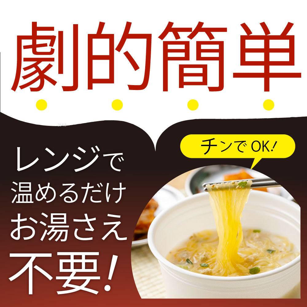 | お召し上がり方 | (1) マンナンヌードルを袋からあけ、液ごとカップへ移して、粉末スープを入れて、よく混ぜ合わせてください。 液がスープになっています。(開封時、中身が飛び出す恐れがありますのでご注意ください。) (2) ラップをせずに電子レンジで約2分(600W)加熱してください。 (3) よく混ぜ合わせて出来上がりです。 ※加熱後の状態に応じて加熱時間を調整してください。 ※連続で3分以上加熱しないでください。容器が破損する原因になります。 ※調理時、持ち運び時、喫食時等のヤケドには十分ご注意ください。 |