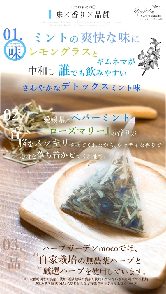 ハーブは、私たちの心にゆとりを、からだに元気を、そして暮らしにうるおいを与えてくれます。■魅力いっぱいのハーブティーは、香りの効果と飲むことで、心とからだにやさしく働きかけます。手軽に、美味しいハーブティーを楽しんで下さいね。■また、お風呂も楽しみのひとつですね。自然の香りのハーブ入浴剤で、優雅なひとときを!新鮮なハーブを煮込んで作った手作り石けんで、やさしくからだを洗って下さいね。■ハーブガーデンmocoは、これからもみなさまに愛される商品を作り続けていきます。