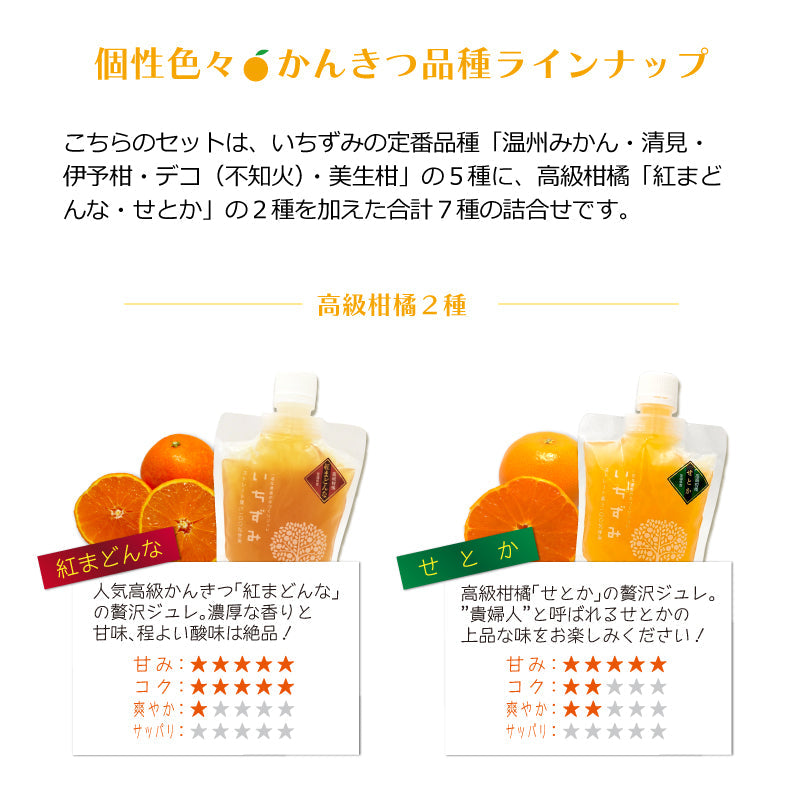 糖度が高くフルーツ贈答品としても人気の愛媛限定の品種「紅まどんな」と「せとか」を加えた