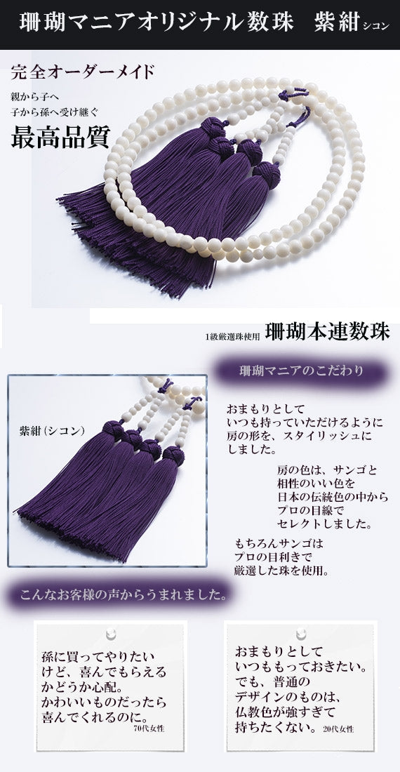 ○お子さまお孫さまにお譲りする時、サンゴを磨き糸と房を替えると新品に光り輝きます(サンゴは磨くと今までの厄や煩悩も払えるといいます)