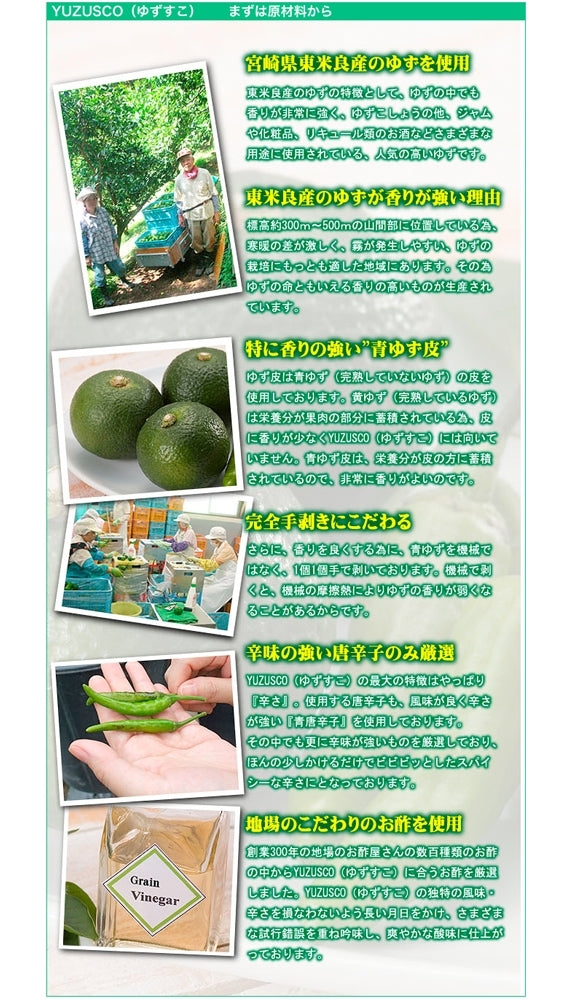 醸造酢(国内製造)、唐辛子、ゆず皮、食塩