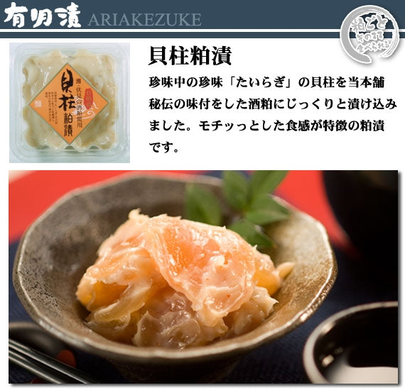 昔ながらの製法で味付けした酒粕に貝柱を漬け込み、じっくりと数カ月をかけ熟成させました。