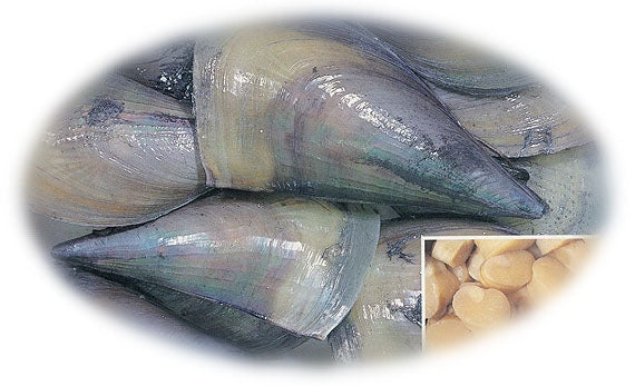 たいらぎ貝は三角形の形をした二枚貝です。主に貝柱と外套膜(ヒモ、ビラ)として出荷されています。貝柱はとても美味で、刺身、バター焼き、寿司だね、粕漬などで食べます。