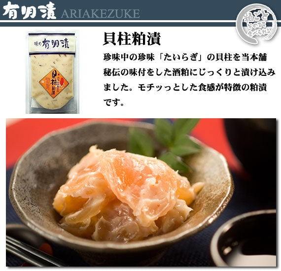 昔ながらの製法で味付けした酒粕に貝柱を漬け込み、じっくりと数カ月をかけ熟成させました。
