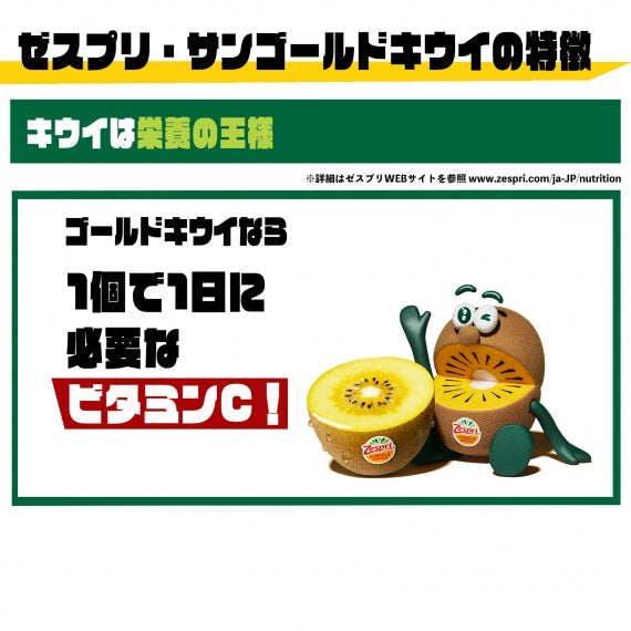 ゼスプリ・グリーンキウイ1個に含まれる食物繊維はバナナ約3本分にあたります。サンゴールドキウイは、1こで、レモン8個分のビタミンC。