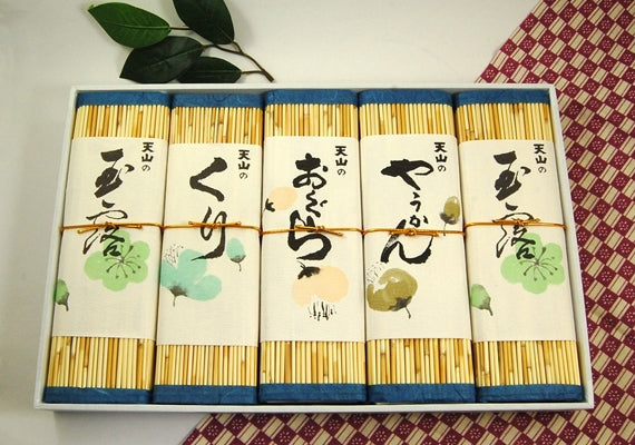 小豆は北海道産の大納言小豆を、玉露・抹茶は設立時から宇治茶を、また、くりは四国産の厳選したものを使用しています。