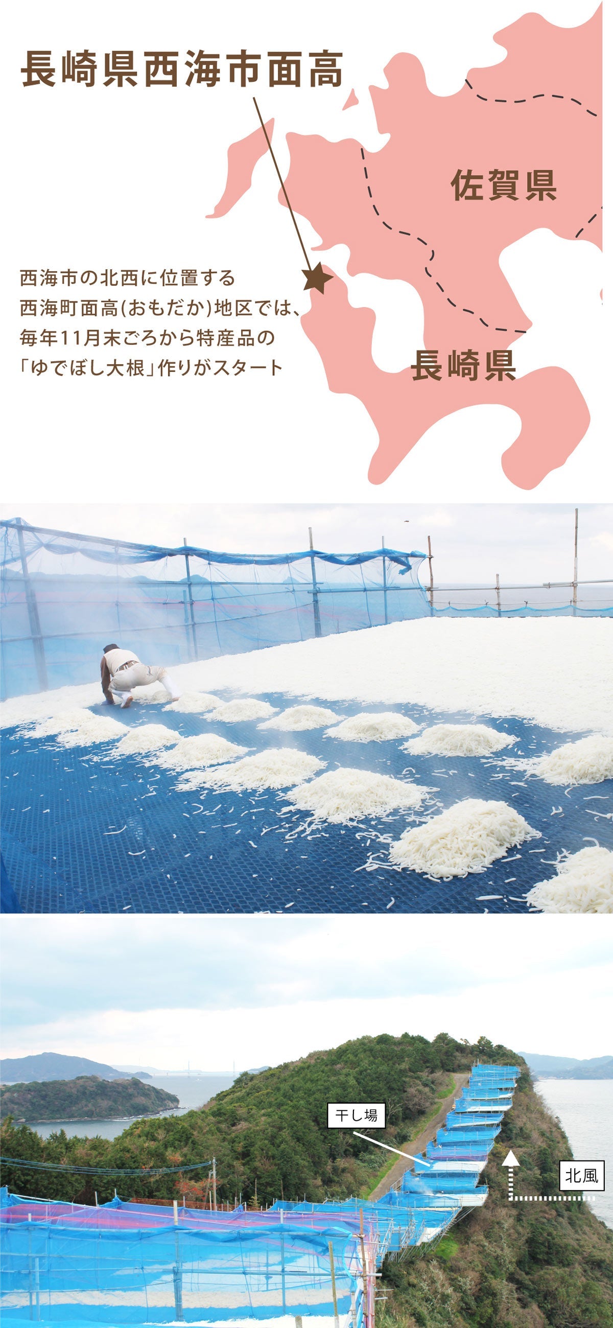 旨みを蓄えたゆでぼし大根は、西海で昔から作り続けられている伝統的な保存食品です。