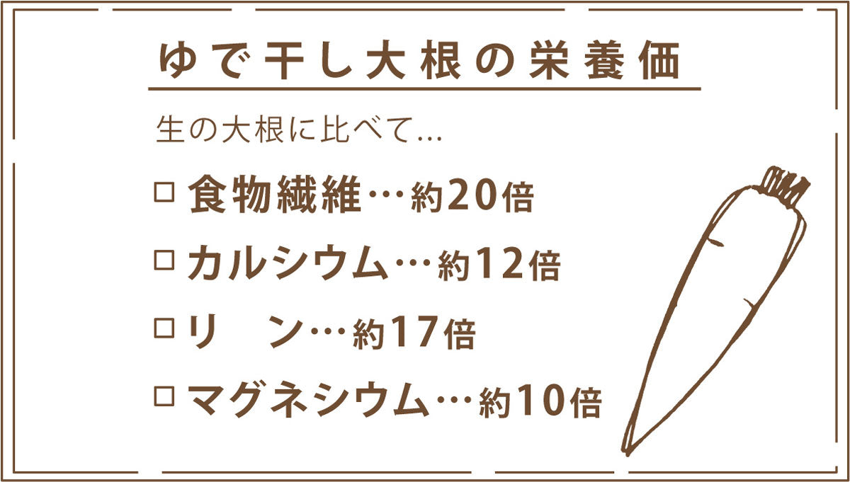 【「ゆで干し大根」は生の大根と比べて栄養が豊富。】