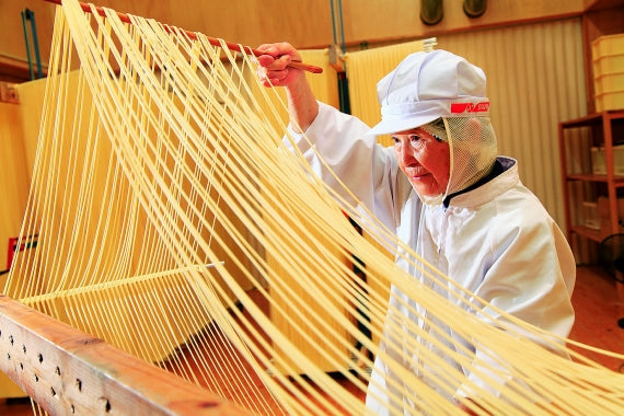 往時の手延製法そのままに、神父が伝えたかったテイストに限りなく近づける為の「独自の配合と製麺技術」への研究を通して、伝来の原点を髣髴(ほうふつ)とさせるパスタが完成しました。独特の食感とパスタらしい「弾力とテイスト」に加え、手延麺の特徴である「しなやかな伸び」を兼ね備えた麺です。