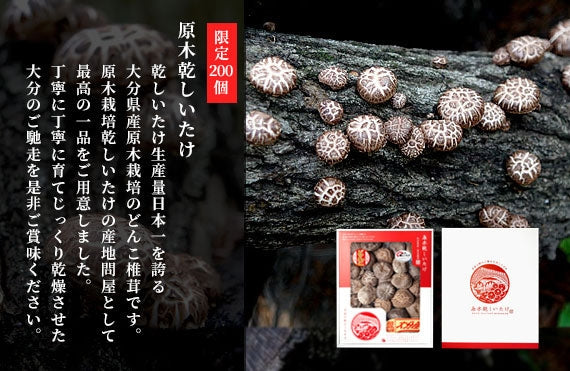 乾しいたけ生産量日本一を誇る大分県産原木栽培のどんこ椎茸です。