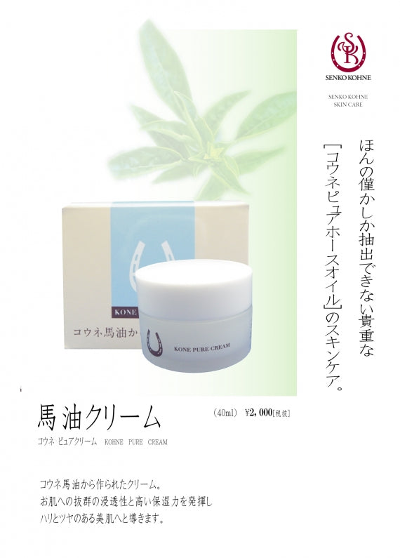 コウネピュアクリームは、馬のたてがみの下からわずかに採れるコウネ馬油を