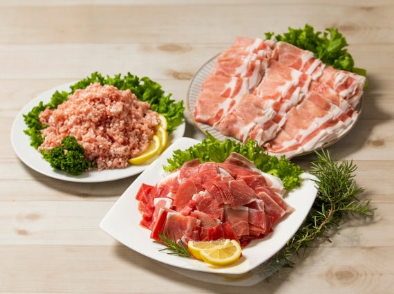 ・黒豚ロースしゃぶしゃぶ用(鹿児島県)・黒豚モモ切り落とし(鹿児島県)・黒豚ミンチ(鹿児島県産)