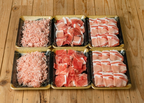 黒豚ロースしゃぶ用250g×2、黒豚モモ切り落とし250g×2、黒豚ミンチ250g×2