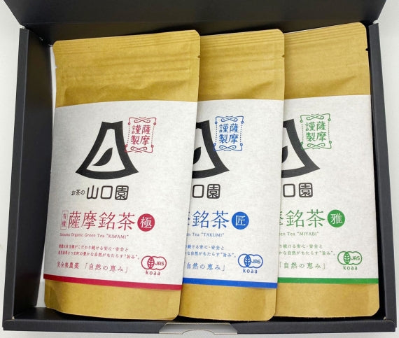 鹿児島県さつま町産の有機薩摩銘茶3種セット(極・雅・匠 各80g・計240g)