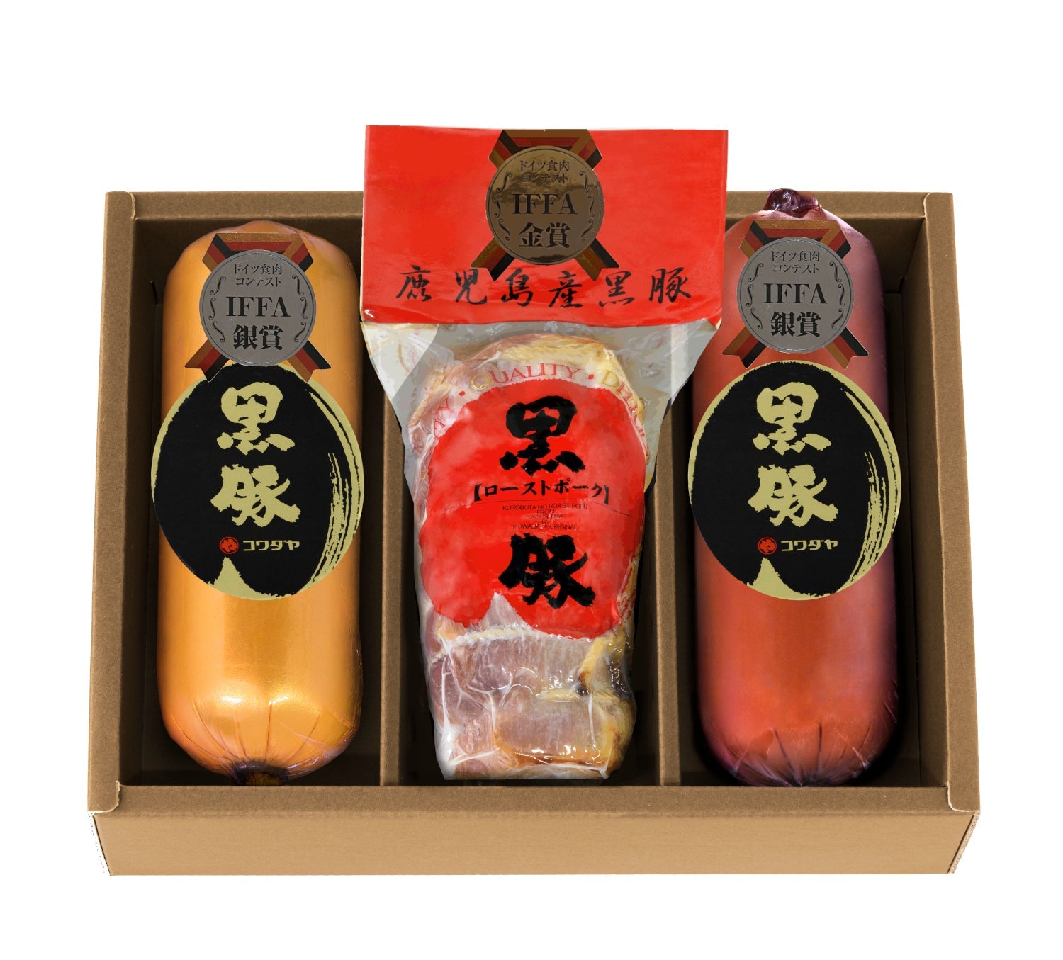 (金)黒豚ローストポーク180g、(銀)黒豚ビアシンケンソーセージ・(銀)黒豚ボローニャソーセージ 各280g