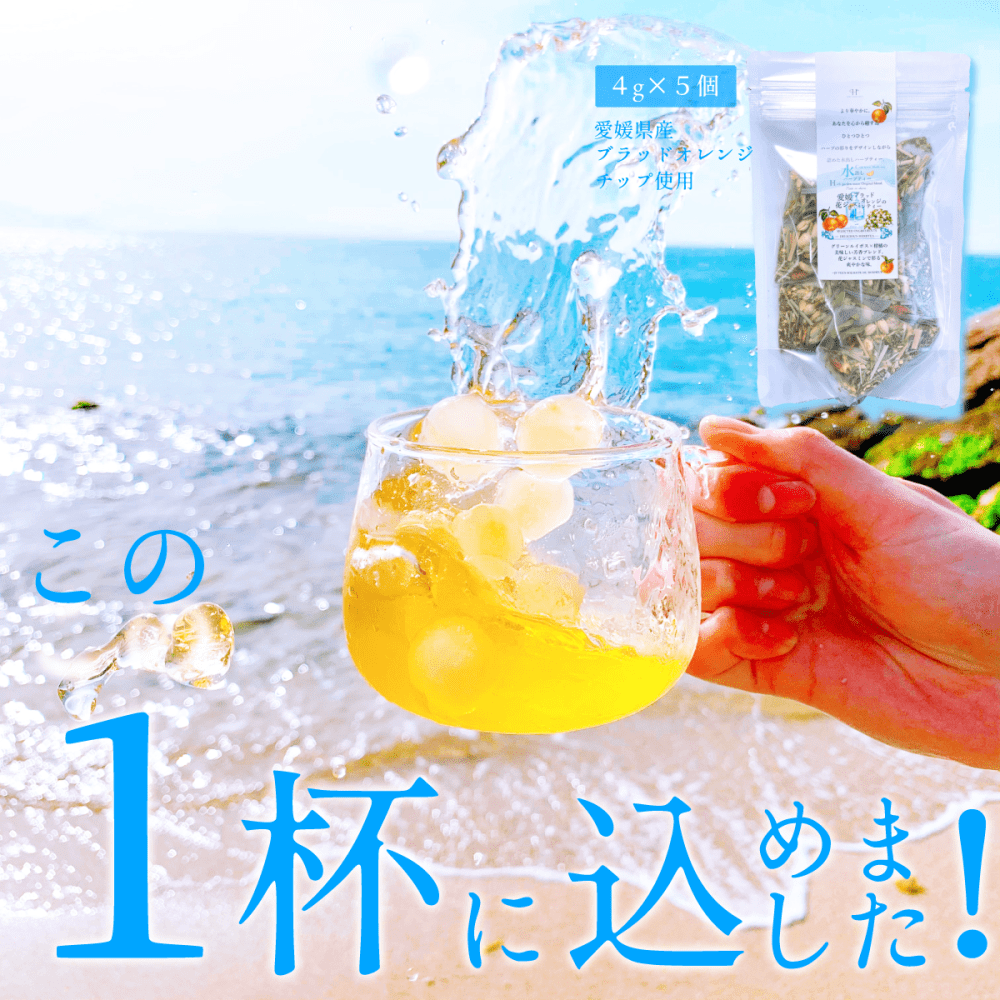 ●原材料・・・レモングラス、バタフライピー、いよかんチップ、ミント、コーンフラワー