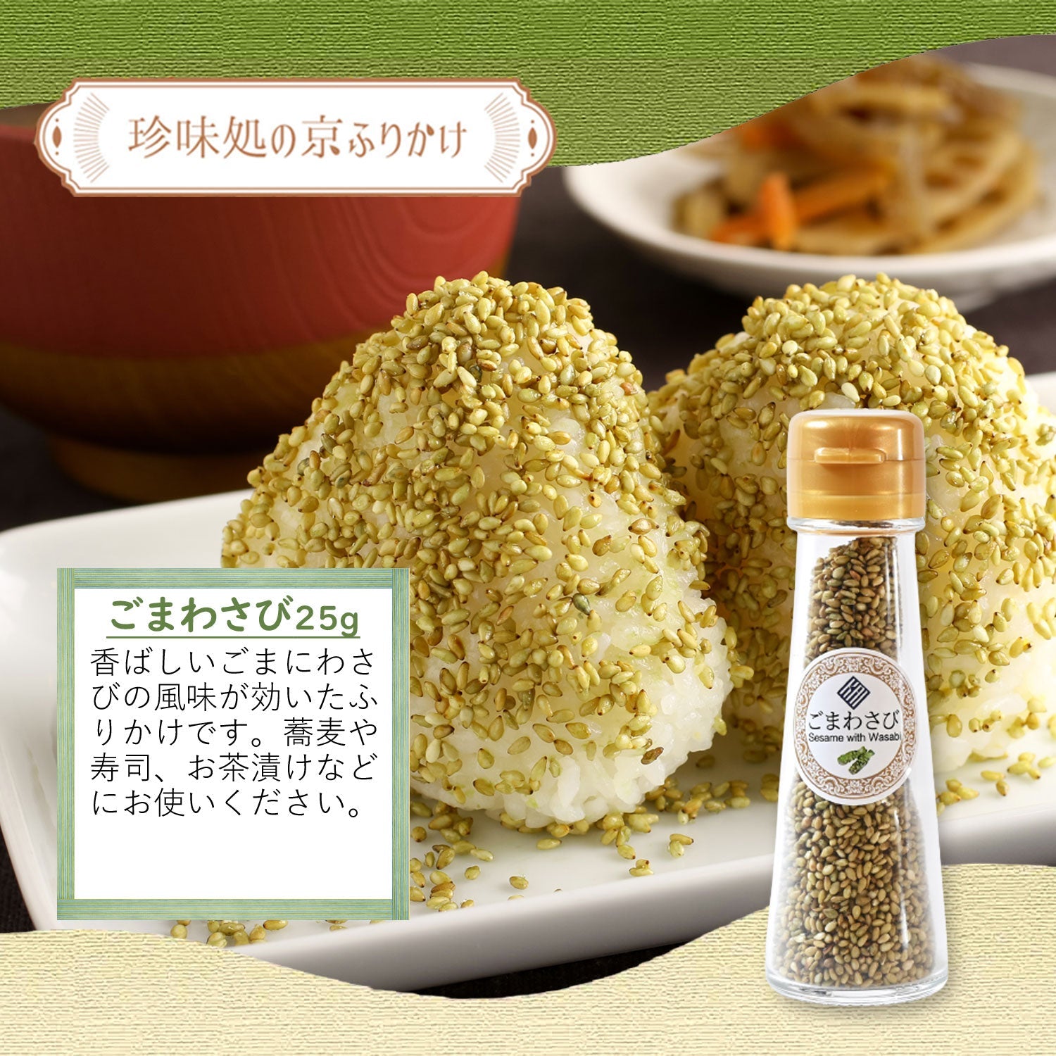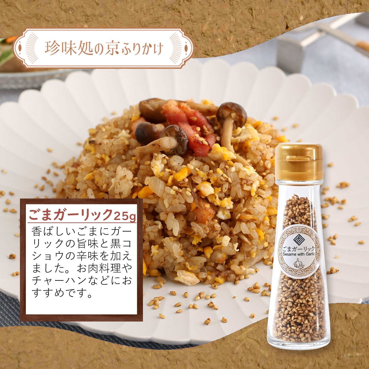【ごまかつお】いりごま(国内製造)、かつお削り節、醤油、食塩、ぶどう糖、砂糖、発酵調味料、酵母エキス、香辛料/調味料(アミノ酸等)、酸化防止剤(V.E)、甘味料(ステビア)【ごまガーリック】いりごま(国内製造)、おろしにんにく、糖類(砂糖、オリゴ糖)、食塩、たん白加水分解物、黒コショウ/調味料(アミノ酸等)【ごま柚子胡椒】いりごま(国内製造)、柚子こしょう(唐辛子、柚子表皮、食塩)、でん粉分解物、柚子こしょう粉末/調味料(アミノ酸等)【ごまわさび】いり胡麻(国内製造)、食塩、糖類(砂糖、オリゴ糖)/調味料(アミノ酸等)、わさびパウダー(環状オリゴ糖、香料)、香辛料抽出物、酸味料、着色料(クチナシ色素)【ごまゆず】いりごま(国内製造)、たんぱく加水分解物、ゆず果汁(高知県産)、糖類(砂糖、オリゴ糖)、食塩/調味料(アミノ酸)、香料、着色料(クチナシ)【ごま梅】いりごま(国内製造)、食塩,糖類(砂糖、オリゴ糖)、かつおエキス、発酵調味料、梅肉(紀州産)/調味料(アミノ酸等)、酸味料、着色料(ベニコウジ色素、赤キャベツ色素)、シソ香料【ごま三彩】いり胡麻、たん白加水分解物、ゆず果汁、食塩、糖類(砂糖、オリゴ糖),鰹エキス,発酵調味料,梅肉/調味料(アミノ酸等)、香料、酸味料、わさびパウダー(環状オリゴ糖、香料)、酸味料、香辛料抽出物、着色料(クチナシ色素)、着色料(紅麹色素,赤キャベツ色素)、シソ香料