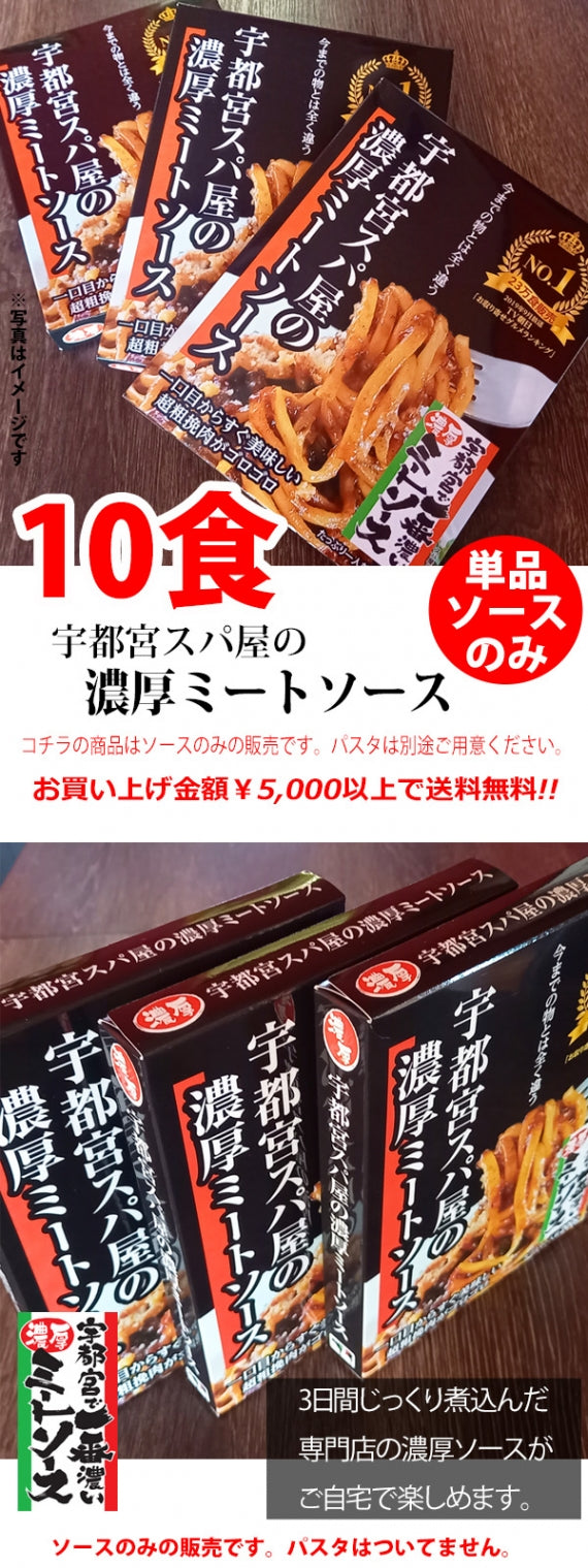 「『スパ屋』でしか食べられない。」「一度食べたら忘れられない」「一口目から驚きのソース」「今までのミートソーストは全く違うなどお客様からたくさんのお声を頂いております。」