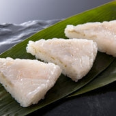 富山湾の宝石・白えびと県産米を熊笹で包んだ風味豊かな押し寿司です。富山湾のみで漁獲される白えびは特有の甘味を持ち、昨今全国的な人気になっています。美味しいシャリがあってこそ素材が活きるというのが同社の信念。米には、程よい粘度と旨味のある最高級の県産コシヒカリは、水は名水百選に選ばれた延命地蔵水傍の井戸水を使用しています。富山県のお土産といえば、鱒ずしが定番でしたが、富山の宝である白えび、米、おいしい水をふんだんに使用した白えび寿しには新たな土産物としての期待が高まります。