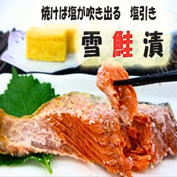 こだわりの頑固店主が「日本で一番 塩辛い紅鮭を目指す」と言ってはばからない、それはそれは壮絶にしょっぱい紅鮭『雪鮭漬』です。しょっぱい紅鮭を食べた経験をある人は多いと思いますが、これは格別、まさに塩引き界のKING OF KINGS とにかく一度食べてみてください。笑いが出るほどしょっぱいです!焼くと塩が吹き出てきて白くなるし・・・。でもご安心あれ。しょっぱくてもパサパサしない食感、強烈な塩気の中にも広がる絶妙な旨み。まさに後世に伝え残したい逸品です。(この文章は福島民報社の成田氏が寄せてくださったものです。)私たちも少しでも多くの人たちにこの味を知っていただき、塩引き界のKING OF KINGSになれたら幸せで~す!