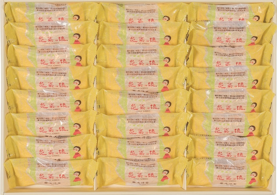 砂糖(国内製造)、手亡豆、小麦粉、鶏卵、乳等を主要原料とする食品、マーガリン、バター、水飴、加糖練乳、ショートニング、ブランデー、牛乳、食塩/トレハロース、膨張剤、香料、乳化剤、クチナシ色素、アナトー色素、酸化防止剤(V.E)、 (一部に小麦・卵・乳成分・大豆を含む)