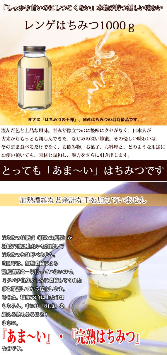 澄んだ色と上品な風味。甘みが際立つのに後味にクセがなく、日本人が古来からもっとも親しんできた、なじみの深い蜂蜜と言えます。