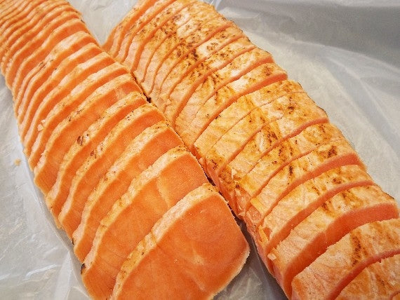 出荷前夜に炙り焼きスライス加工し、急速冷凍します。