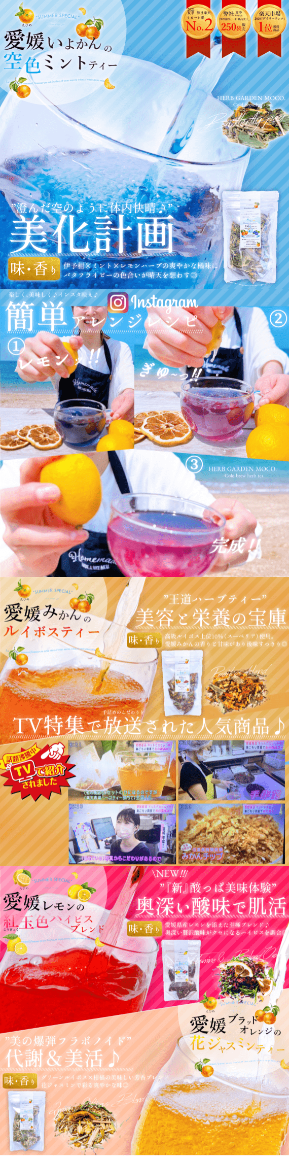 水出しハーブティー、4種(空色ミントティー、みかんルイボスティー、レモンのハイビスブレンド、ブラッドオレンジの花ジャスミンティー)(各4g×5個)