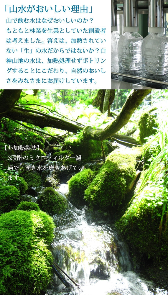 白神山地の水は余分なミネラルが含まれていない『軟水』なので、コーヒー、お茶、紅茶、水割りに非常に適しています。また、ご飯を炊くとき、和風だしをとるときにご使用されるのも良いでしょう。