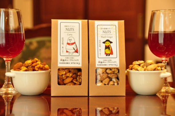 くるみ、カシューナッツ、アーモンド、蜂の⼦(⻑野県産)、メープルシロップ、てんさい糖、醤油、塩、⽣姜(⼀部に⼤⾖を含む)