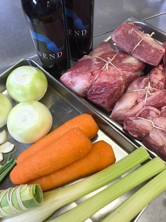 黒毛和牛と香味野菜を一晩赤ワインに漬けてマリネ