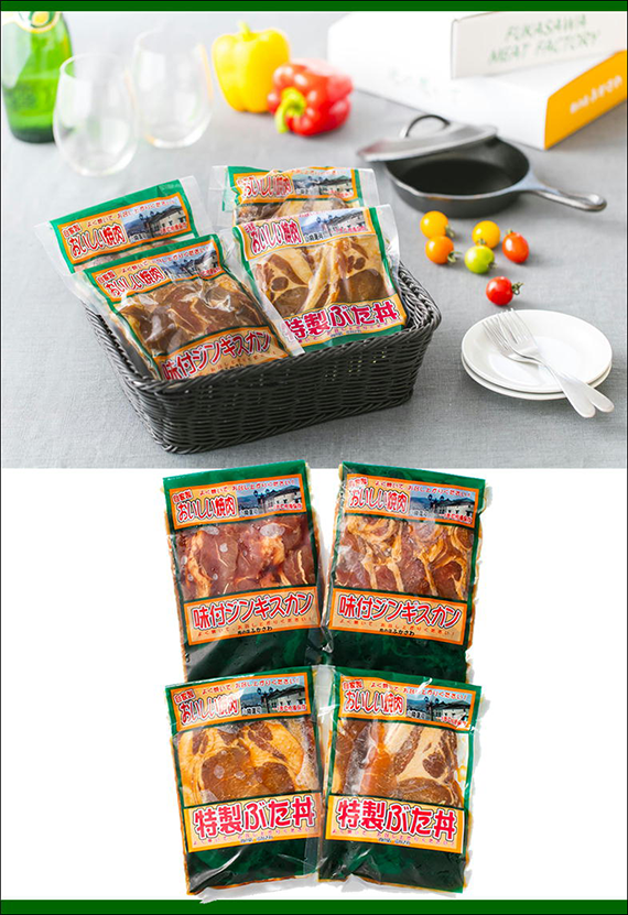 味付ラム2個(1個250g)、ぶた丼2個(1個250g)
