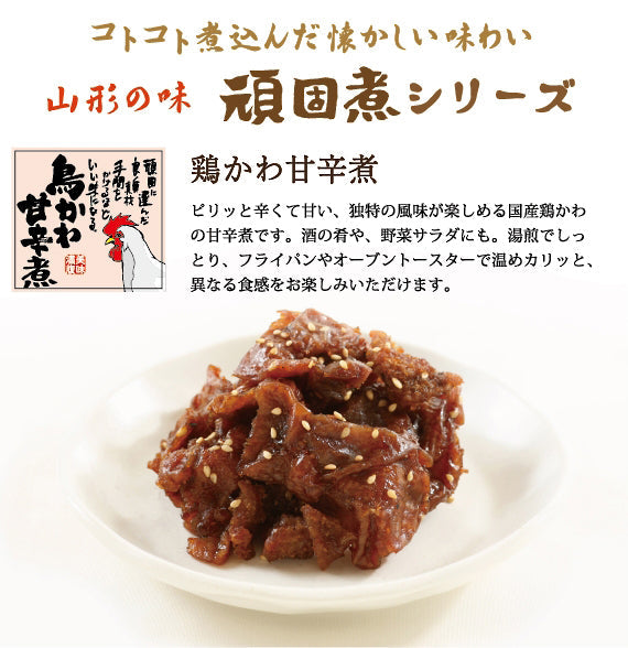 鶏皮(国産)、醤油、赤味噌、砂糖、白胡麻、生姜/調味料(アミノ酸等)