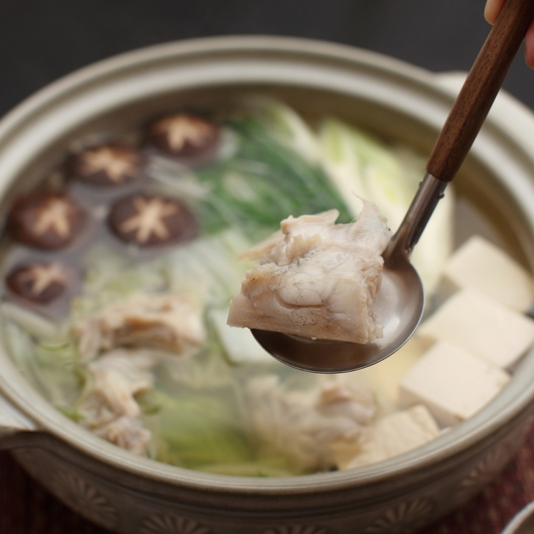 トラフグ(アラ約250g、刺身約120g、皮・身皮50g、焼ヒレ)、ポン酢80ml、もみじおろし1袋、やくみ