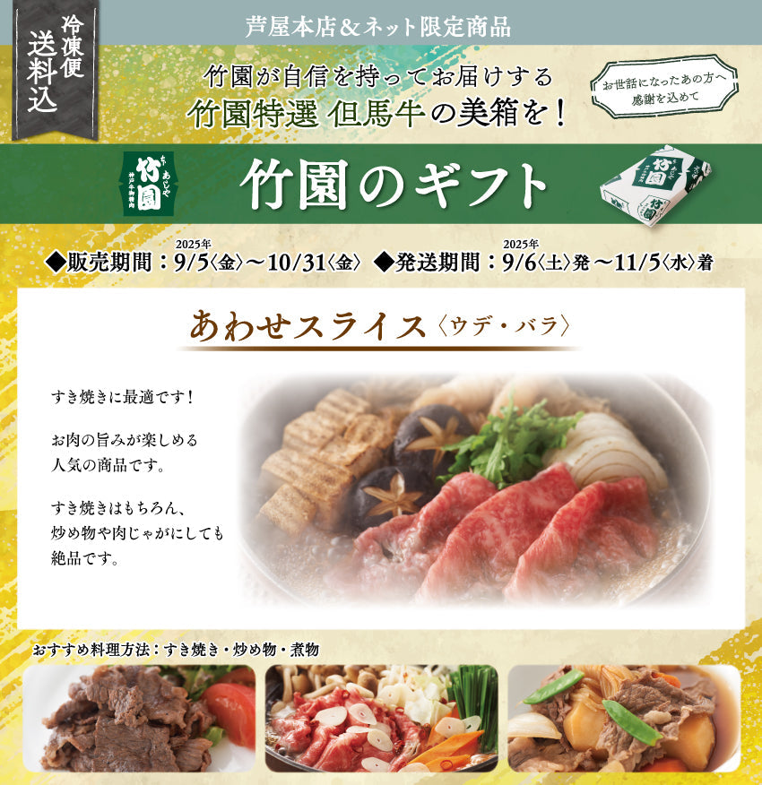 【10/31までの期間限定】【送料込】あしや竹園特選 但馬牛 あわせスライス〈ウデ・バラ〉
