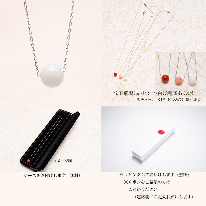 珊瑚丸珠直径約5.5㎜ チェーンK18WG 長さ約40㎝