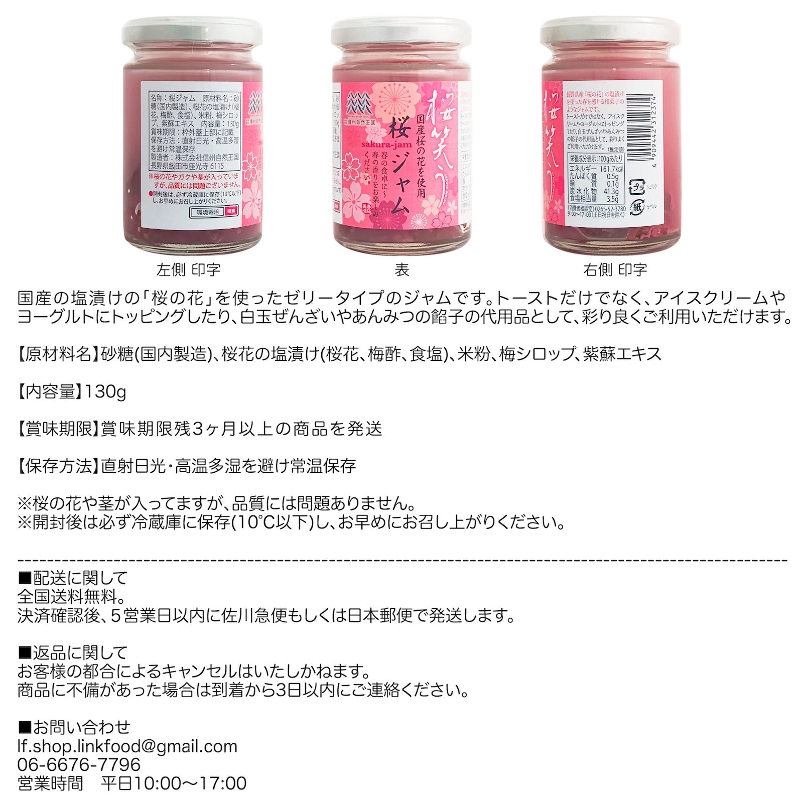 桜ジャム/砂糖(国内製造)、桜花の塩漬け、梅果汁、紫蘇エキス凝固剤(ペクチン(りんご由来))