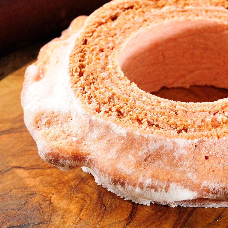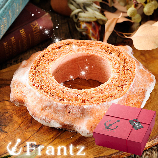 切り口が木の年輪に見えることから「一重一重年輪をかさねるように、幸せがつづいていきますように」と"しあわせを贈るスイーツ"としても知られるバウムクーヘン。神戸フランツでは、クーベルホワイトチョコレートと甘酸っぱい苺のドライパウダーを練り込んだ生地を、表面はカリっと、中はしっとり何層にも重ねて贅沢に焼き上げました。
