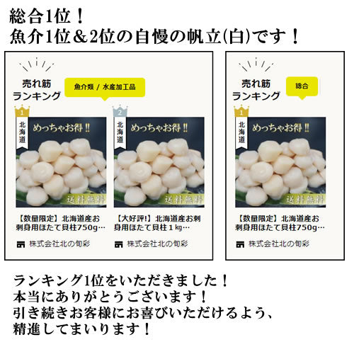 <北海道産お刺身帆立貝柱(白ほたて)>