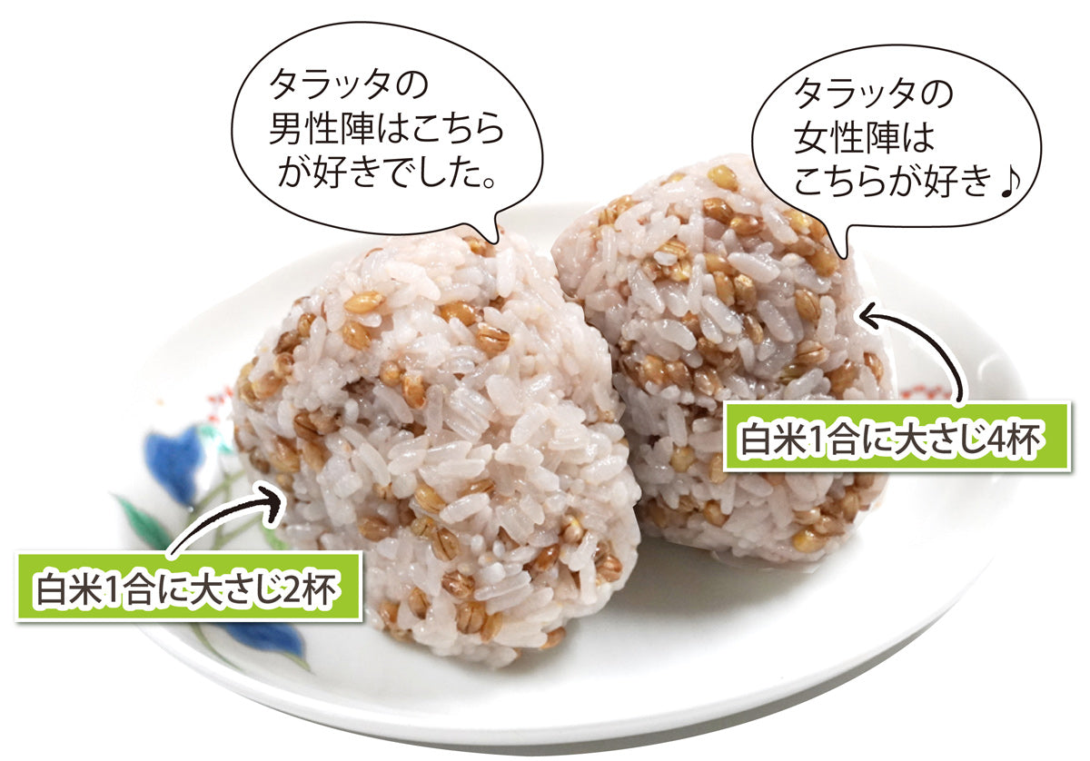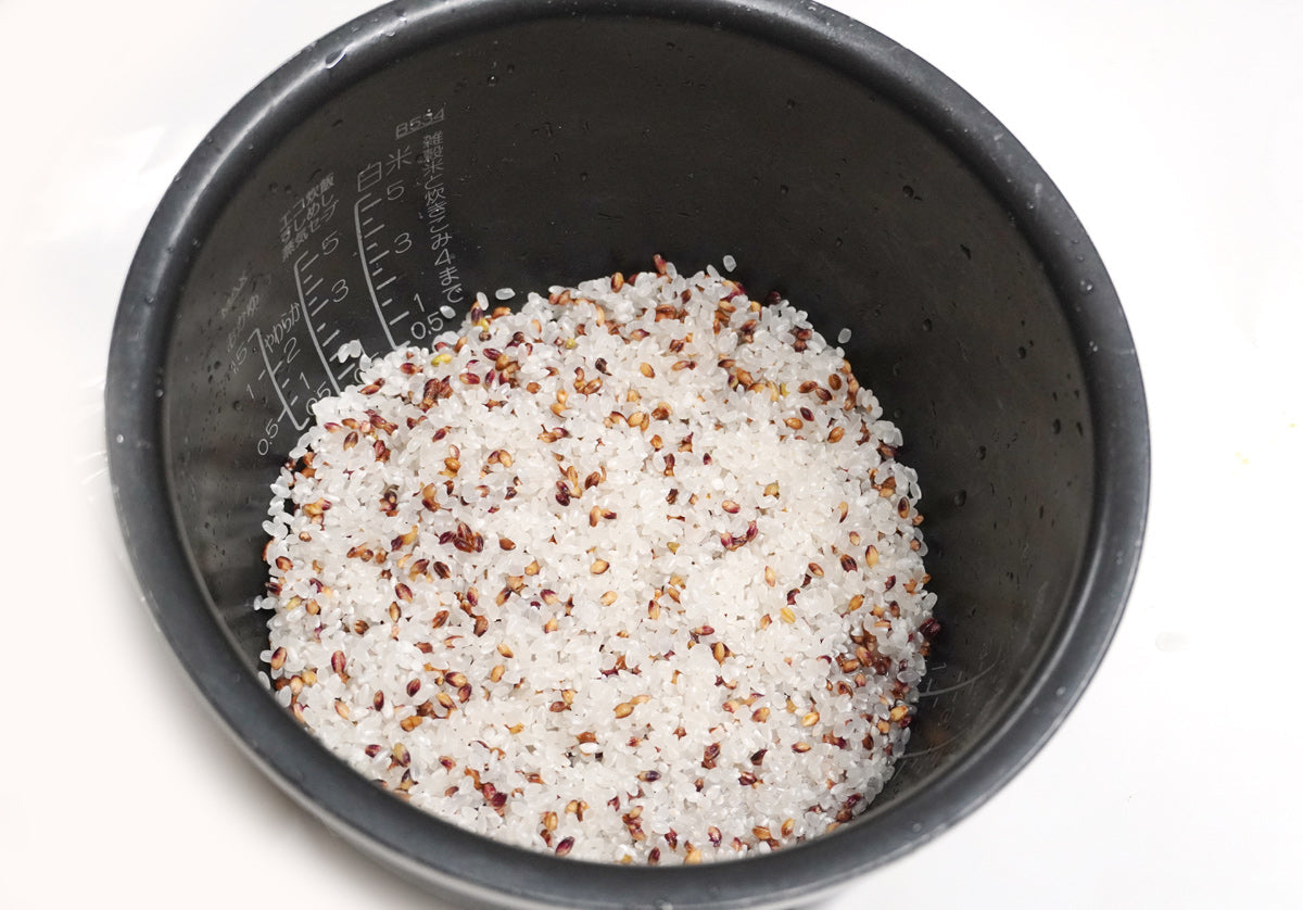 ② いつものお米の水加減に、混ぜた「もち麦」と同量の水を足して炊く。