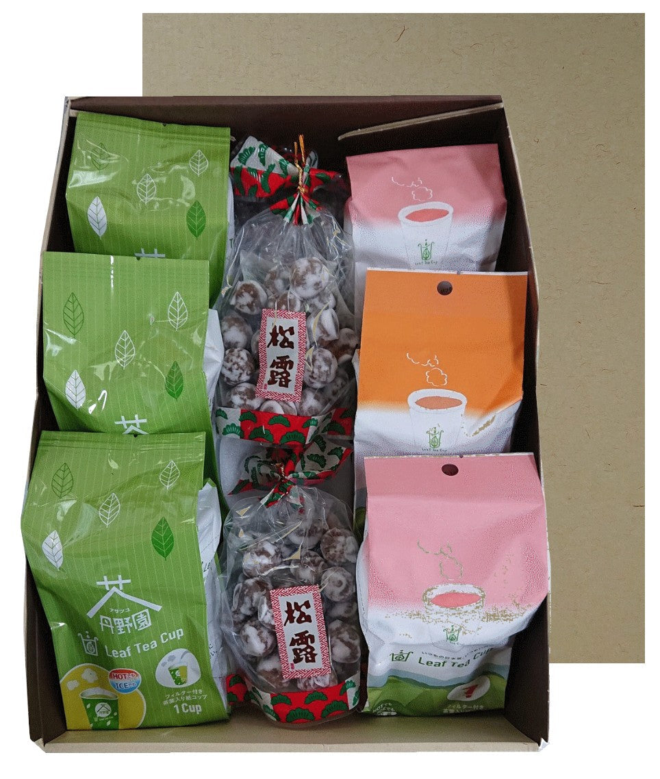 お手軽リーフティーカップと松露(あんこ玉)のお得なセット