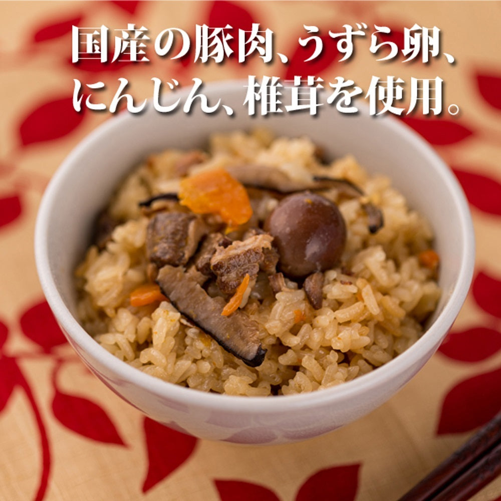 国産の豚肉、うずら卵、にんじん、椎茸を、国産もち米とともに中華だしで丁寧に炊き上げるもちもちのおこわ。