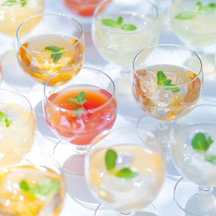 梅の郷・石神で磨かれた梅酒に、和歌山県産の桃、温州みかん、レモンのサングリアをブレンド。リッチで深みのある味わい。
