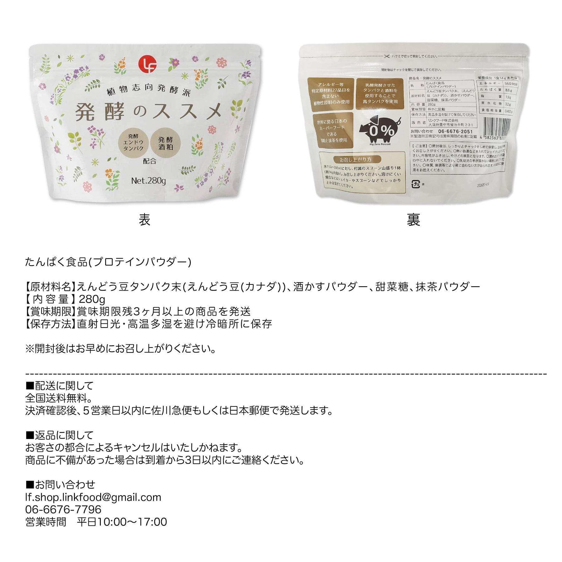 アレルギー等特定原材料27種類を含んでおらず、人工甘味料・香料を含む食品添加物は使用していません。一食あたり8.6gのタンパク質を手軽に摂取できます(発酵のススメ14g摂取時)。ビーガン、ベジタリアンの方にも摂取いただけます。