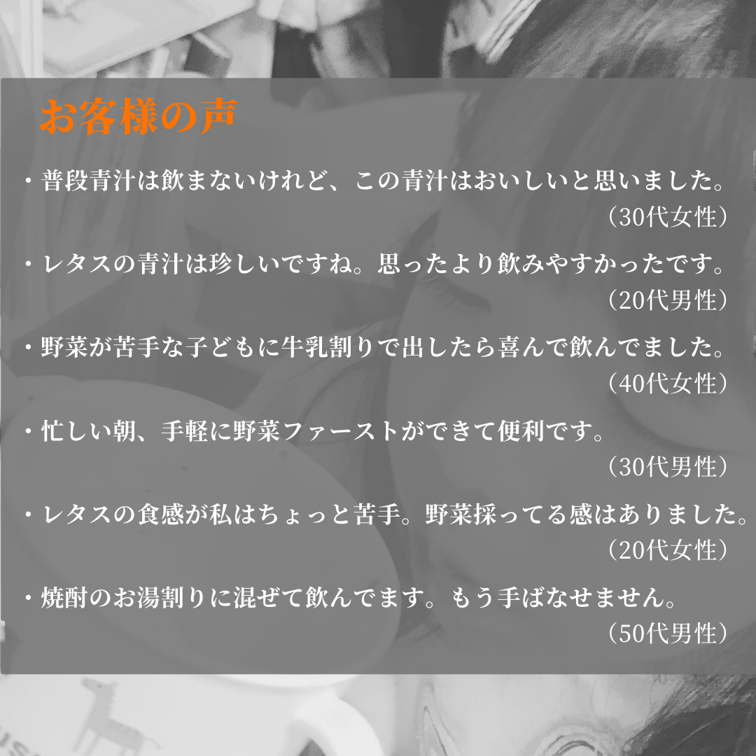 大麦若葉粉末、てん菜糖、緑茶粉末、大豆粉末、玄米粉、レタス、ブロッコリー粉末、ほうれん草粉末(全て国産)